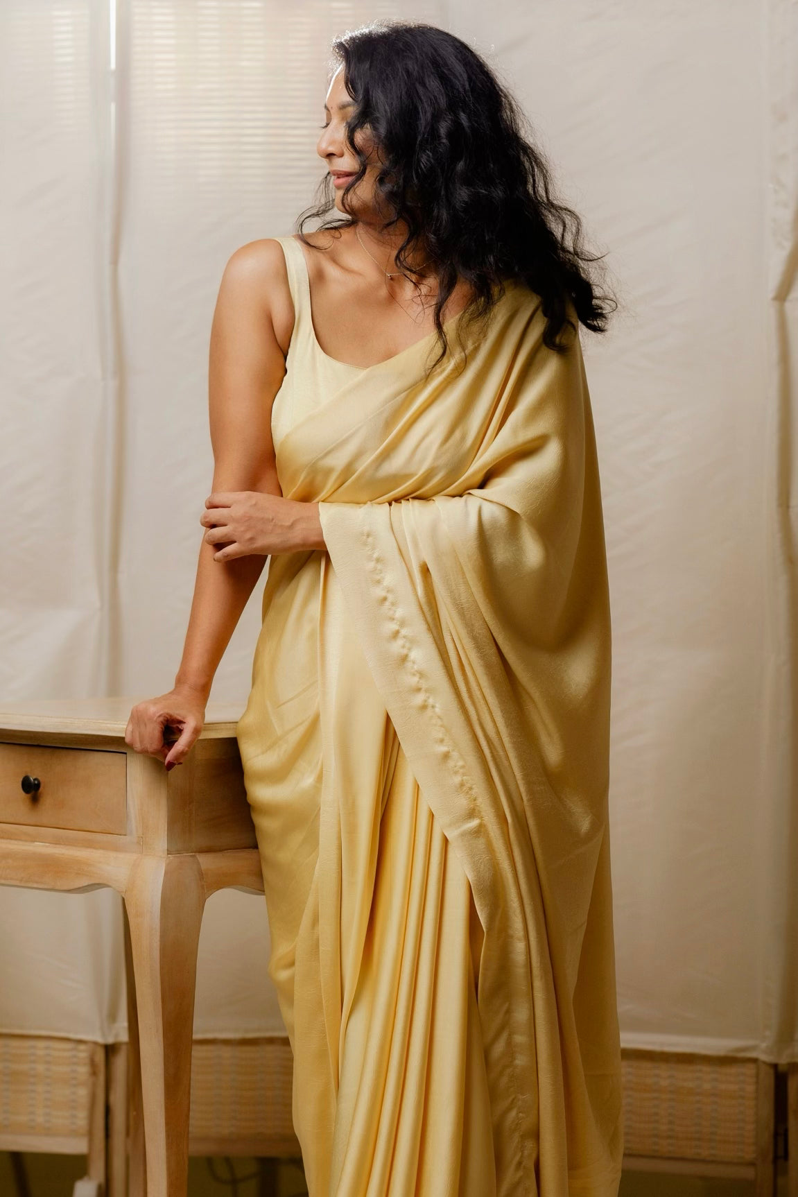 The Lila satin silk saree is designed for effortless elegance and everyday luxury. Crafted in soft satin silk, it features a smooth texture with a gentle natural sheen that enhances the drape without feeling heavy.